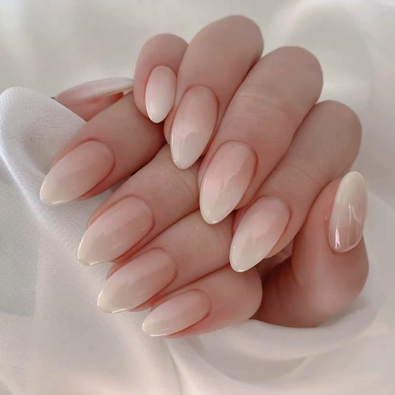 24Pcs/Set Medium-length Ballet Press on Nails Girl Pink Gradient Glitter French Fake Nail Tips Sweet Ins Fashion False Nails Art